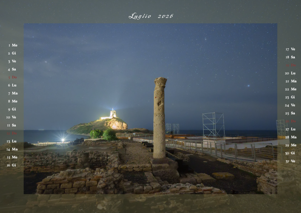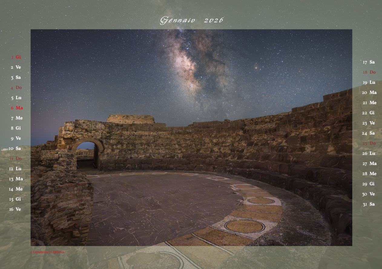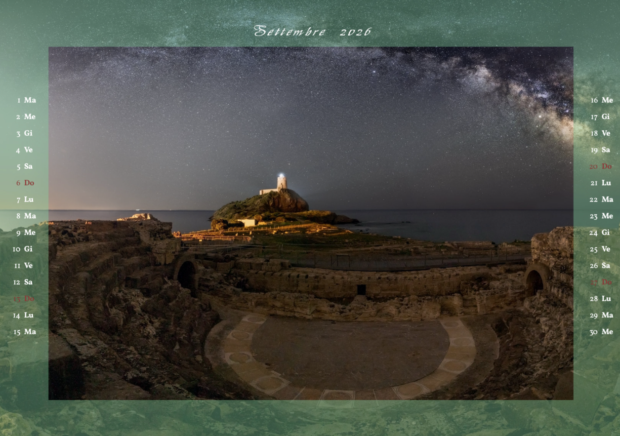 Il Calendario Fotografico “NORA 2026” è un viaggio visivo tra luce e tempo, dove le antiche rovine si fondono con il cielo stellato, le albe e i tramonti che raccontano migliaia di anni