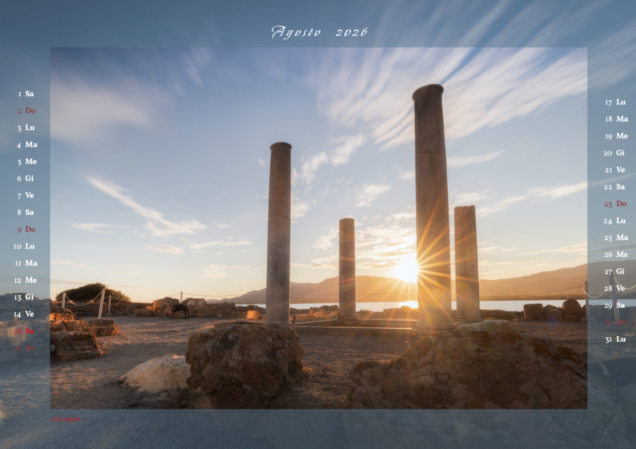 Scopri la magia di Nora, una delle perle archeologiche e paesaggistiche più affascinanti della Sardegna, attraverso un calendario unico nel suo genere.