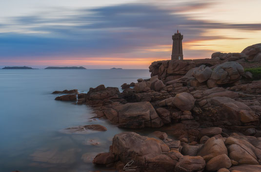 Ho scelto di fotografare il Phare de Ploumanac’h all’alba per catturare la delicatezza dei primi raggi di luce che illuminano le rocce rosa e il
